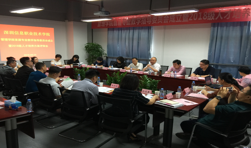 2018年5月13日,管理学院首届专业教学指导委员会宣告成立。委员会聘请了来自前沿企业的10多名企业专家委员,并召开了委员会第一次工作会议。万守付院长、陈新林副院长以及学院各二级机构负责人出席会议。