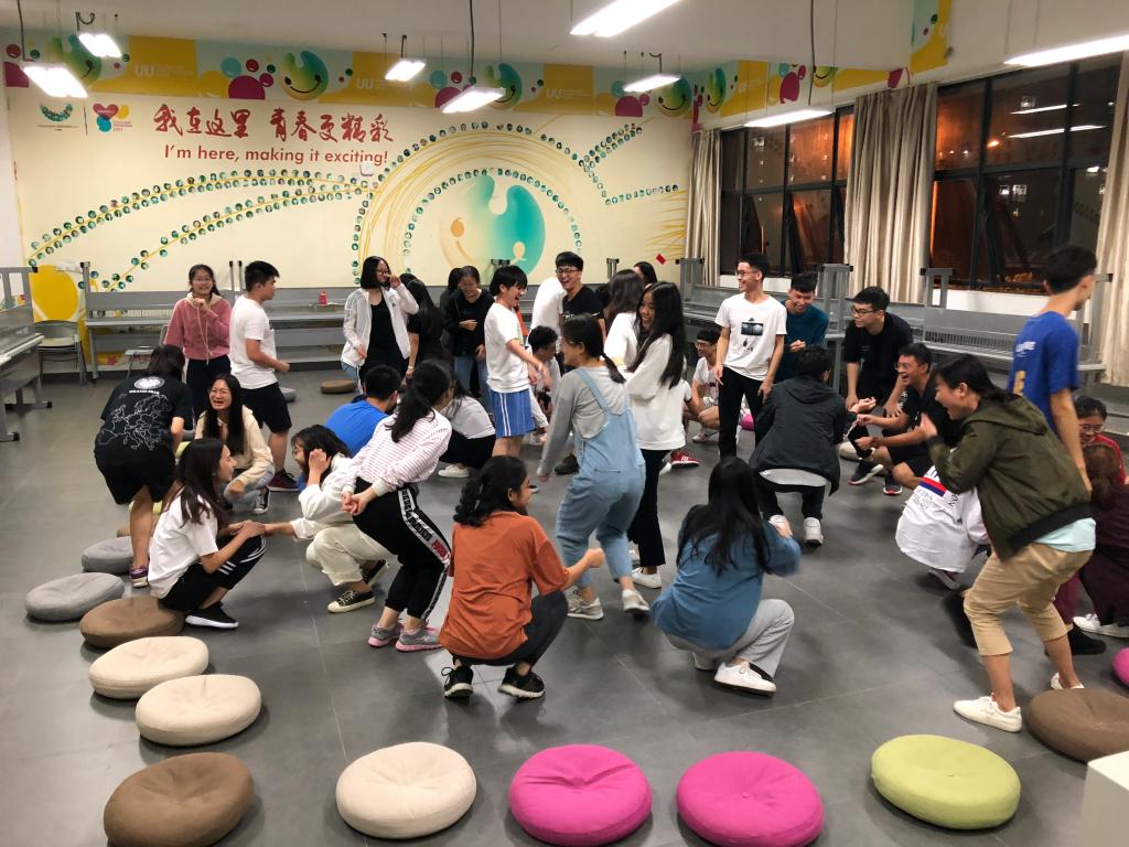 每一场团辅,由两位心理委员组织活动开展,社团部成员协助。活动的第一个环节——暖场环节,活跃了全班的气氛,减少了大家的拘束感。接着,是游戏环节的开展,例如,小变凤凰,心有千千结,同舟共济等游戏项目。这些项目加强了班级成员间的互动,展现出了班集体的向心力。通过游戏,加深了同学间的了解,从单纯地知道名字,到对彼此间的兴趣爱好、生活习惯有所了解,更有部分同学成为挚友。活动的最后,是大合照环节,班助的身影也出现在镜头面前,让同学们与班助的关系变得更友好,感情变得更深厚。镜头下,记录了每个人的笑脸,还有那个不忘初心的自己。