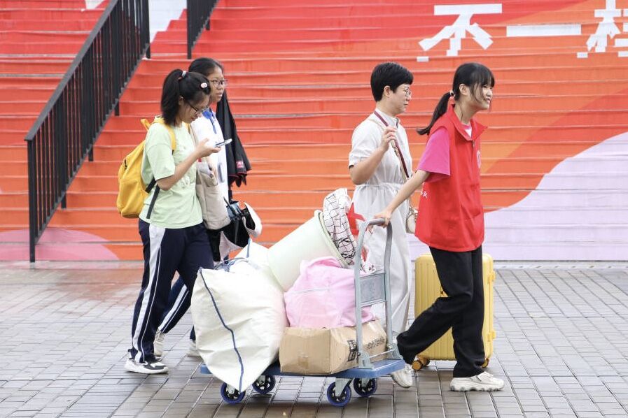 学院蒲公英志愿服务队志愿者帮助2023级新生搬运行李。